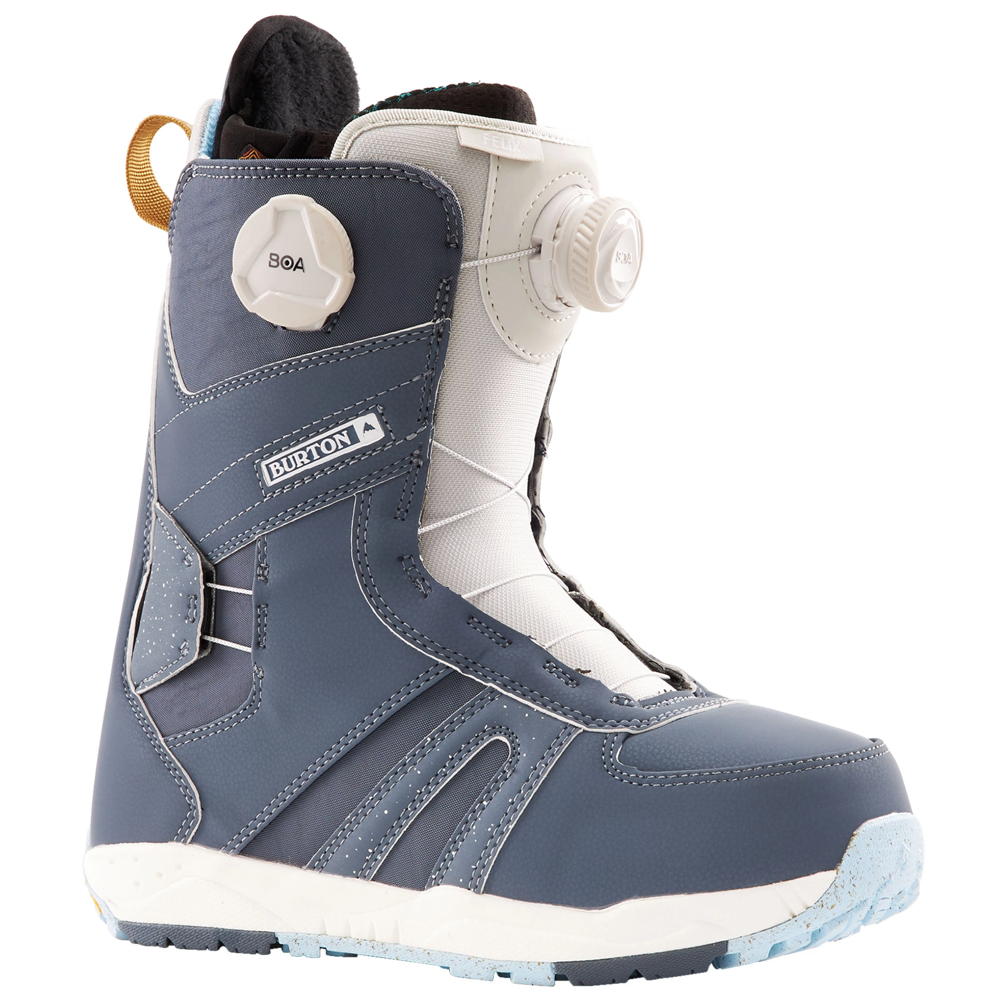 The Burton Women’s Felix BOA® Snowboard Boots offer high-level warmth, comfort, and micro-adjustability with medium flex for a playful, responsive feel. These boots bring a broken-in feel and women’s-specific low-volume fit that translates to better board feel and lasting comfort. They feature the micro-adjustable fit of Dual-Zone BOA® Fit System that lets you independently tension upper and lower zones to match your needs. Their Vibram™ outsole adds confident traction for boot packs and icy parking lots. To keep your feet warm, these boots are designed with heat-reflective tech plus the benefit of foot-hugging, heat-moldable Liners that also insulate and manage sweat. Ride the day away with top-of-the-Line warmth and comfort plus a forgiving medium flex for all-around versatility with the Burton Women’s Felix BOA® Snowboard Boots!
