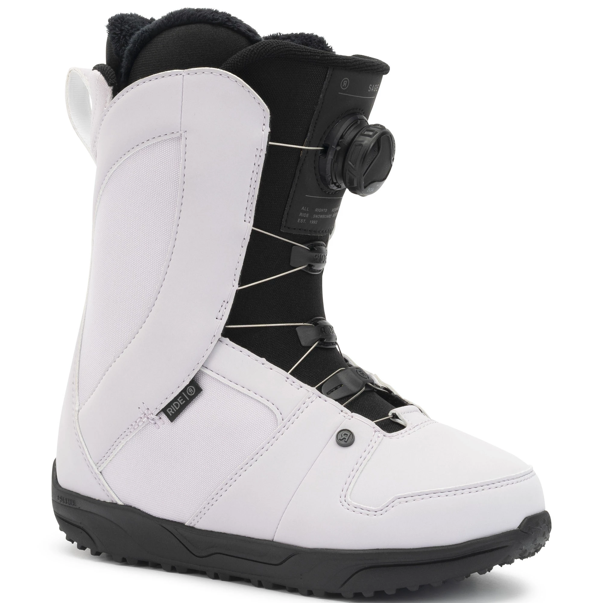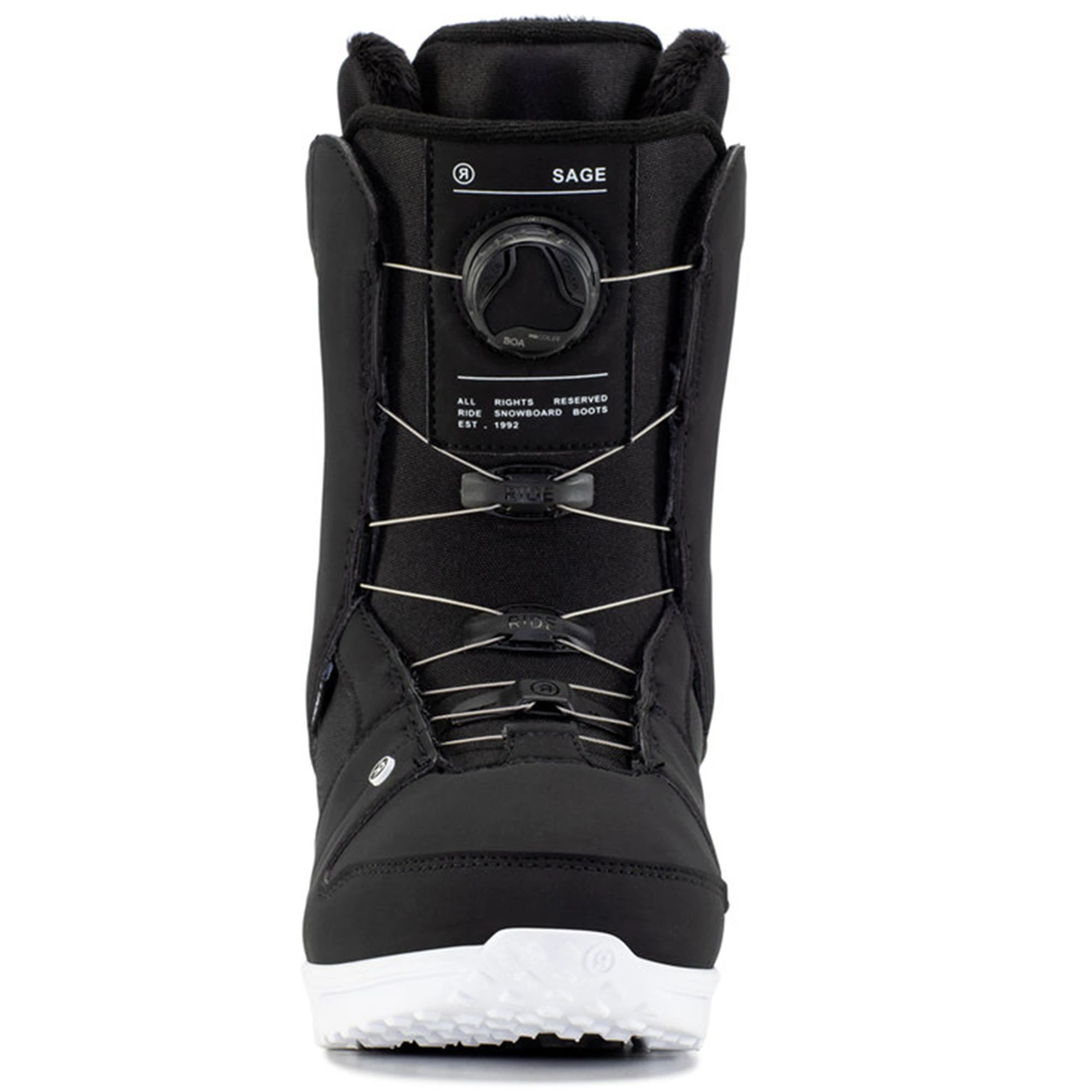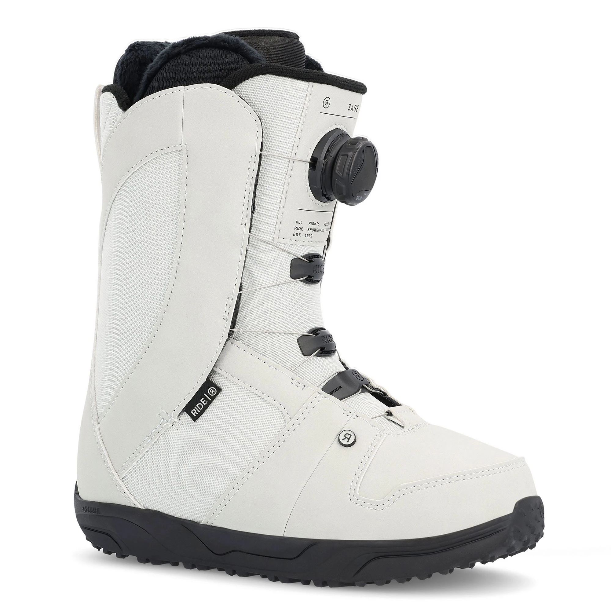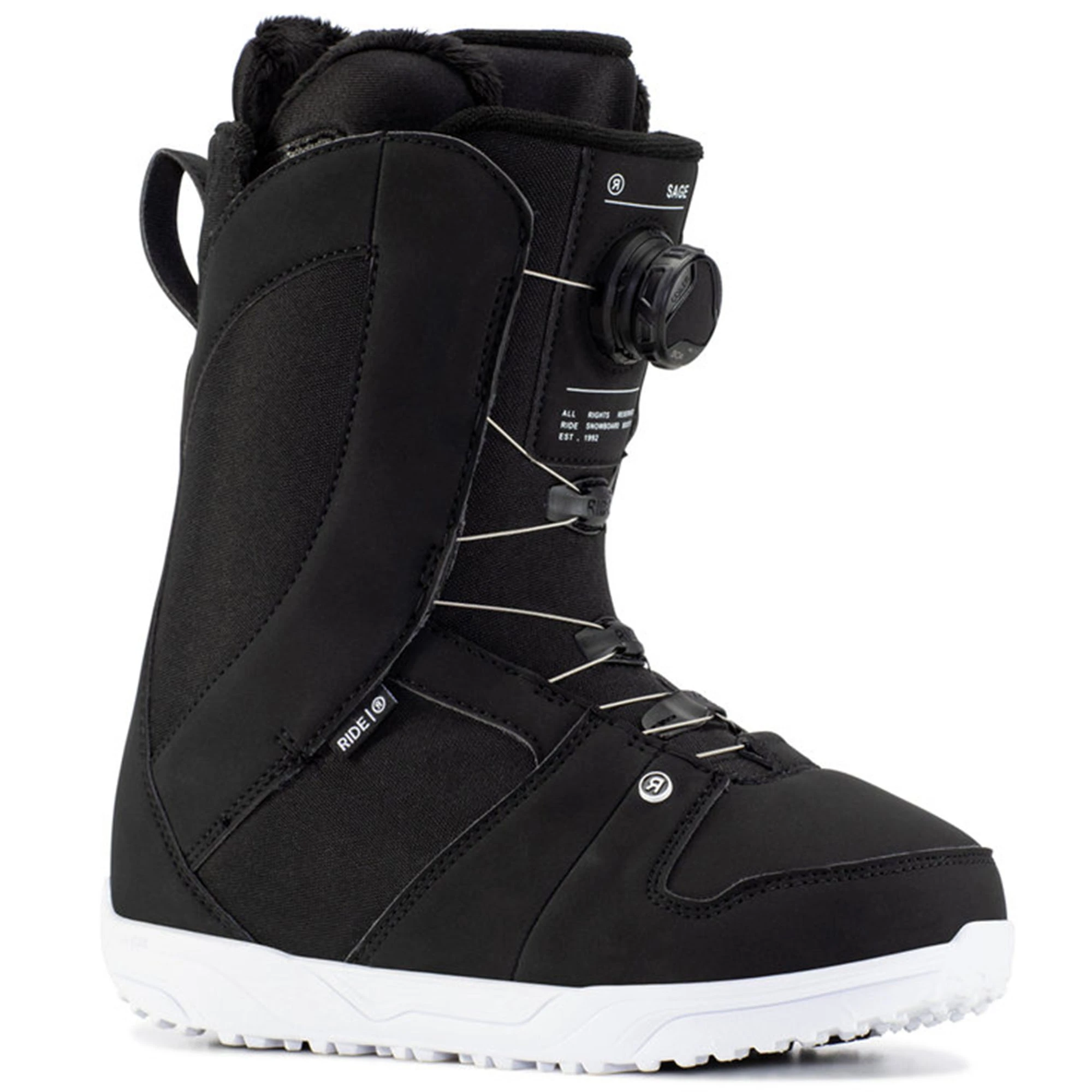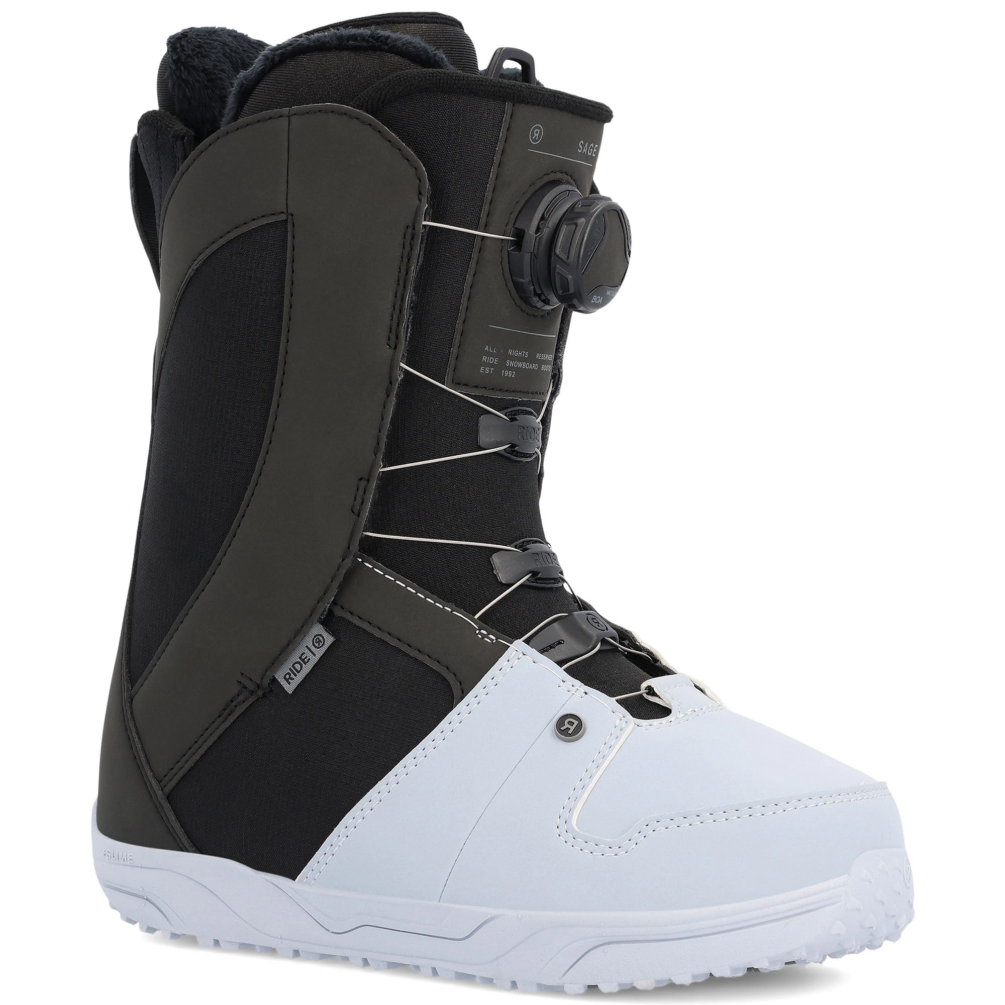 The Ride Women’s Sage Snowboard Boots are fitted with Intuition™ Plus Foam Liners that delivers the ultimate plush feel for all day comfort. The H4 Boa® Coiler system with a dial that retracts slack in the laces. Quick, durable and easy to use. C.A.T. (Calf Adjustment Technology), a Velcro adjustment on the boot cuff, allows for a one-of-a-kind custom fit in the calf area. The Lock Down™ Turbo provides secure, no slack Liner lace hold and the Grip Lite Sole combines +Slime Midsole with rubber pods for durability and traction. The Ride Women’s Sage Snowboard Boots have a medium flex for riders of all ability levels.